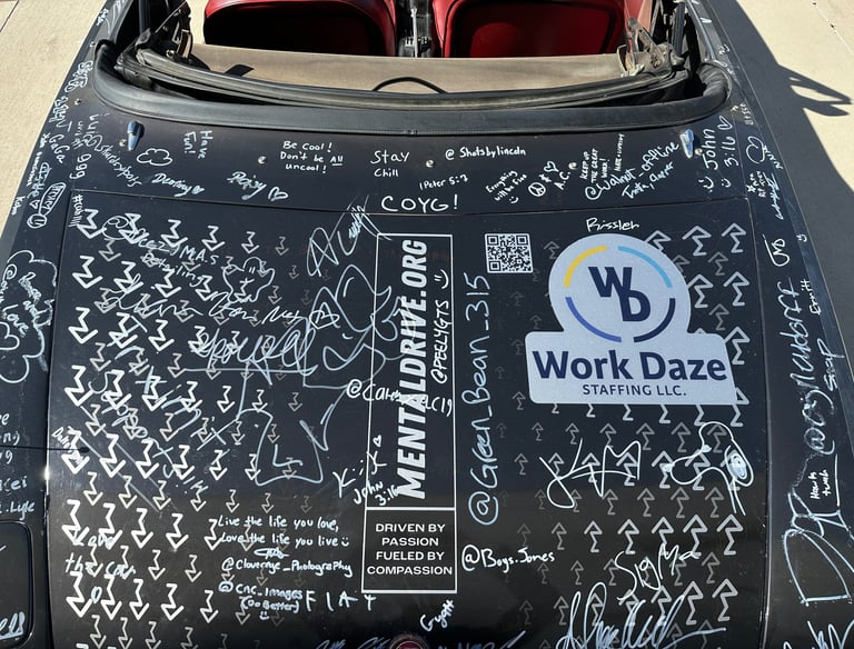 We’re driven by passion and fueled by compassion, with a mission to harness the universal appeal of automobiles to connect with individuals in need of mental health support. Our ultimate goal is to raise awareness about the importance of mental health and a strong mental drive, working tirelessly to reduce the number of suicides and provide hope, support, and resources to those who need it most.